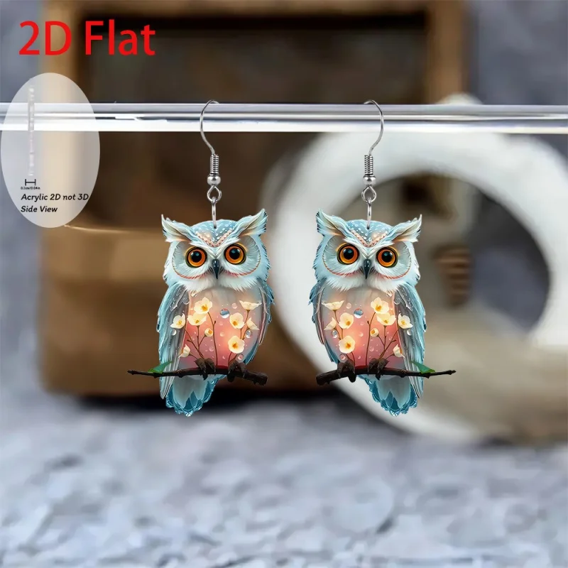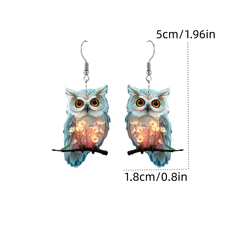 1 pair of acrylic flat earrings, cute design decoration owl acrylic earring pendant