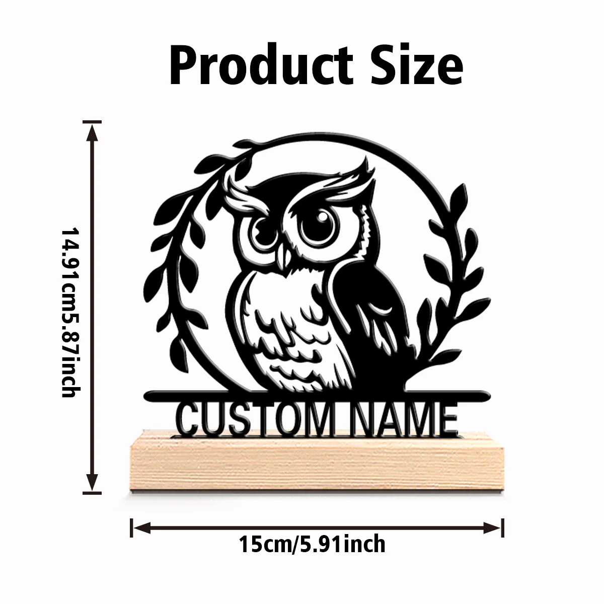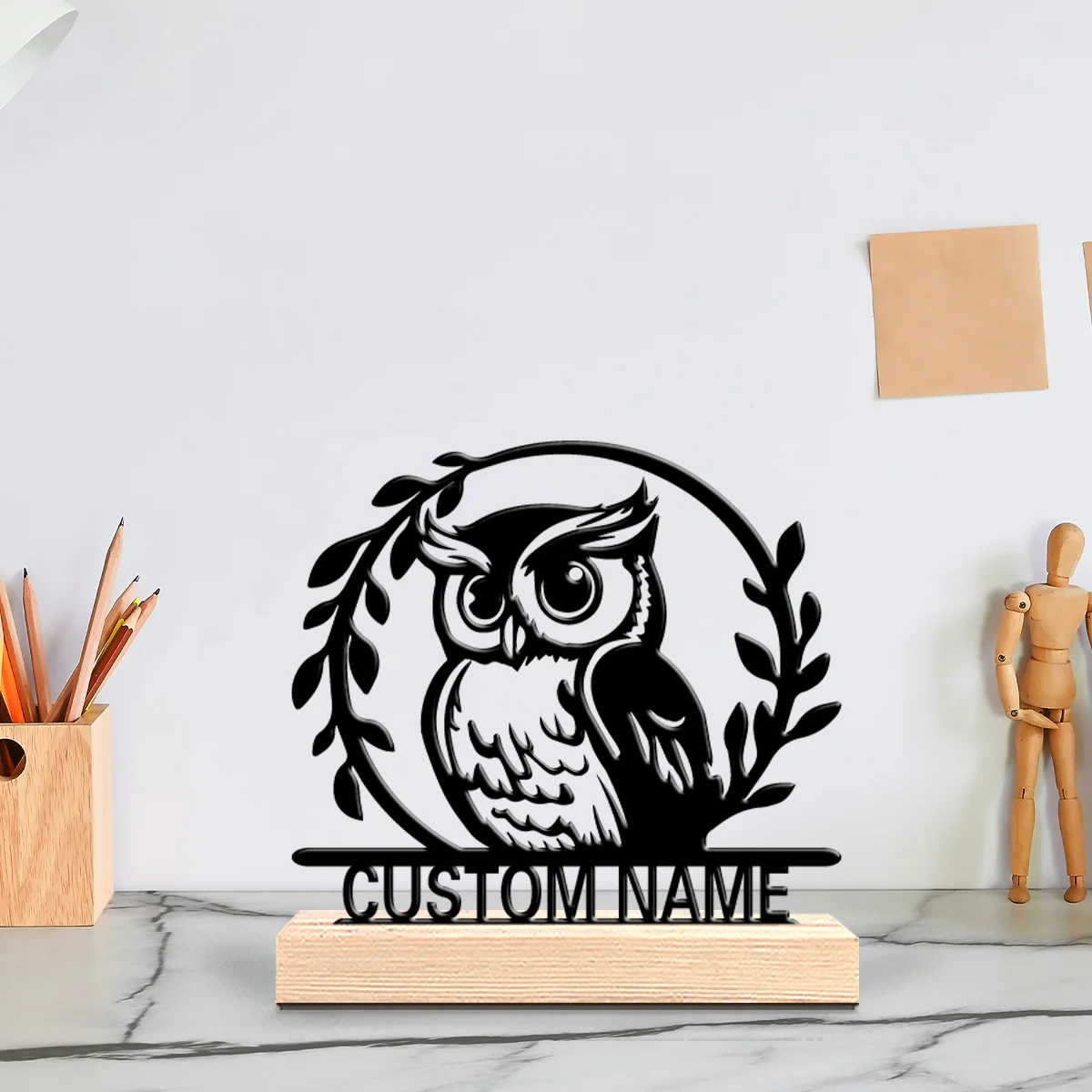 1pc Romantic Personalized Custom Owl Metal Statues Desktop Sculpture With Wooden Base, Suitable For Animal Enthusiasts, Pet Comm