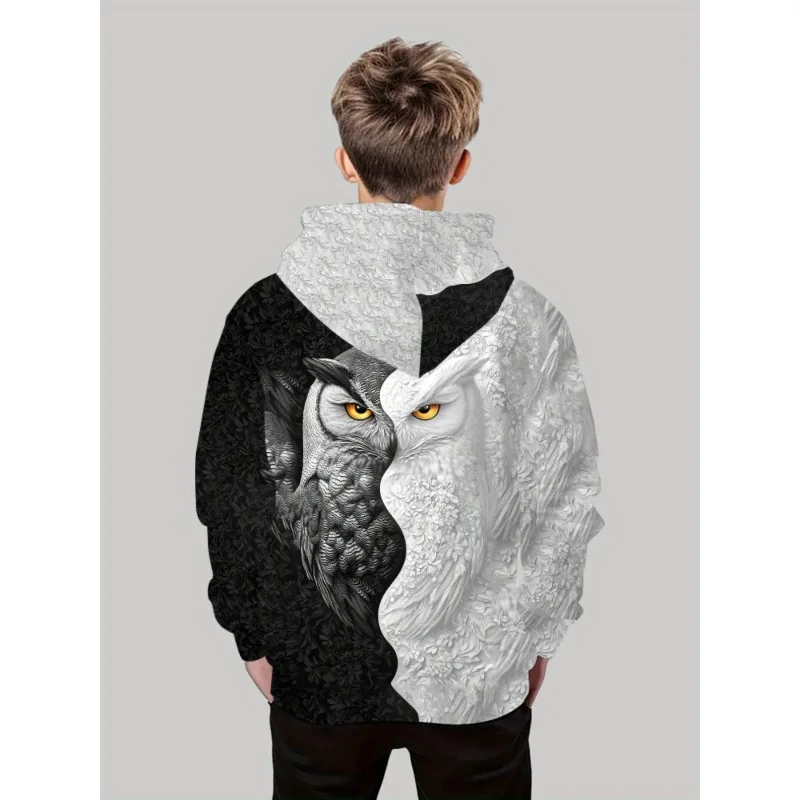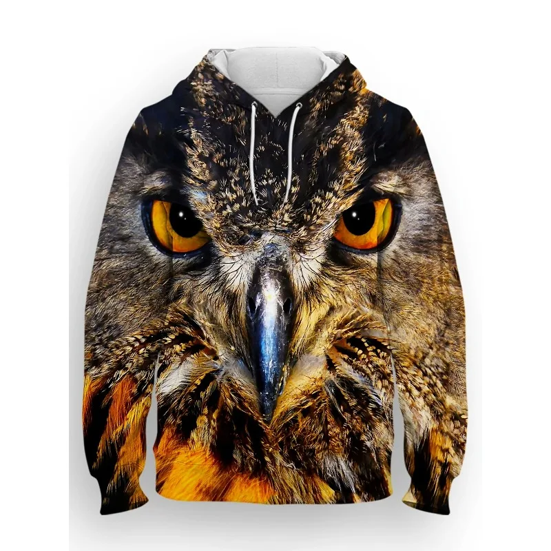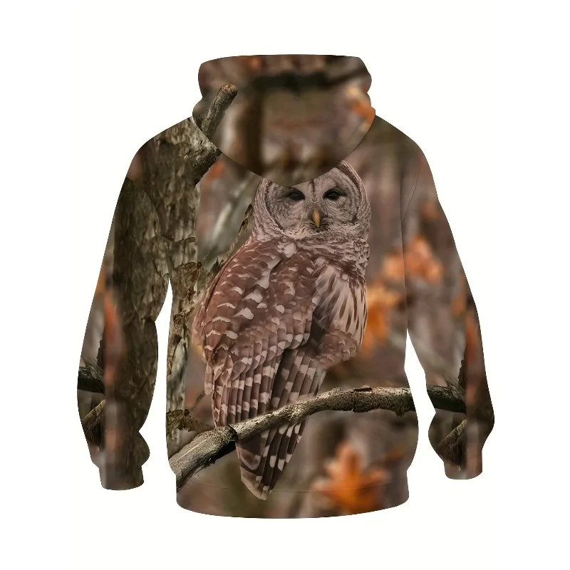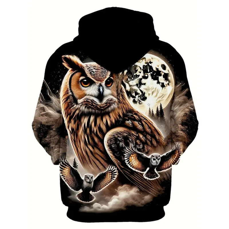 2025 Retro Owl Animal 3D Printing Men's Fashion Hoodie Owl Bird Sportswear Harajuku Sportswear