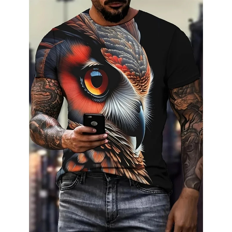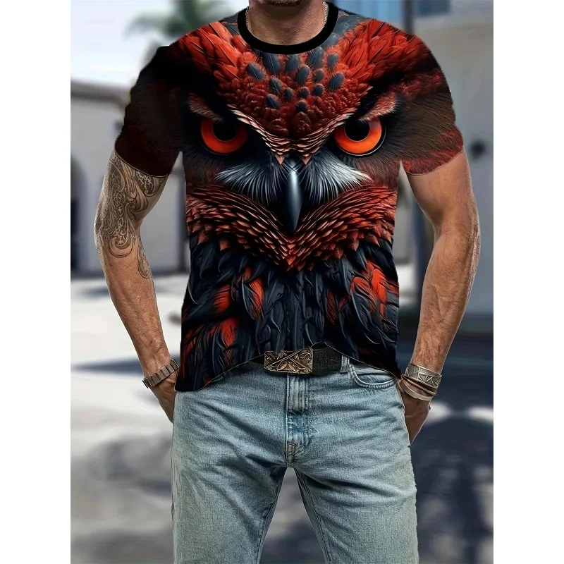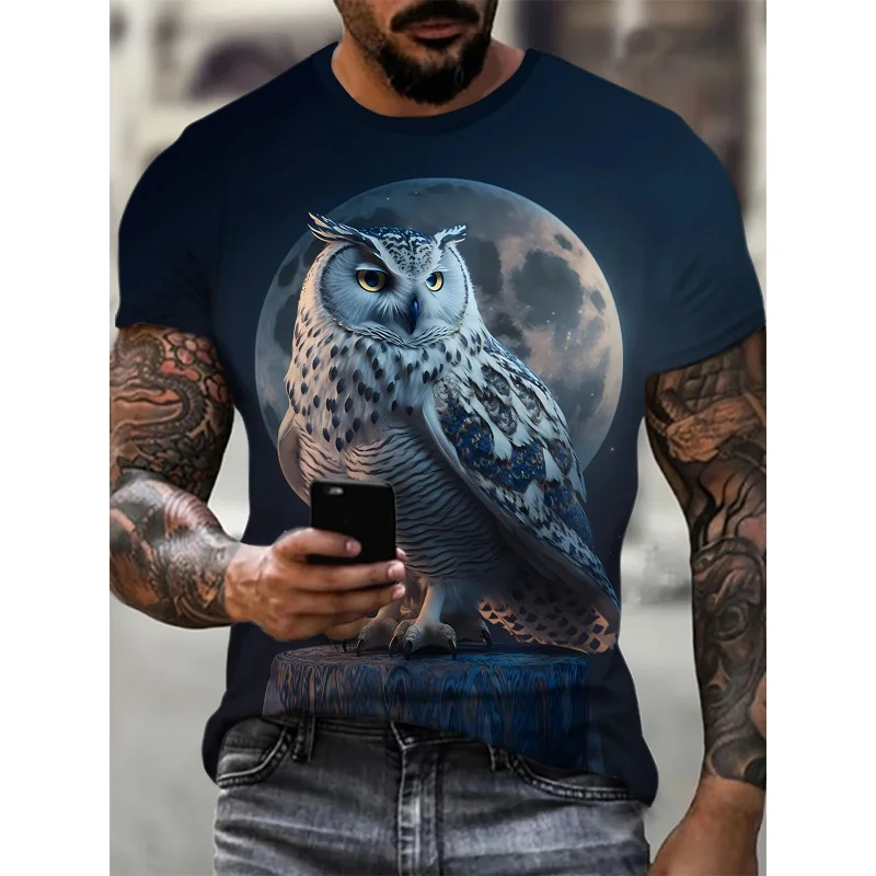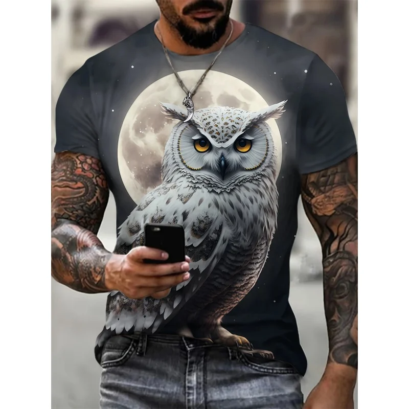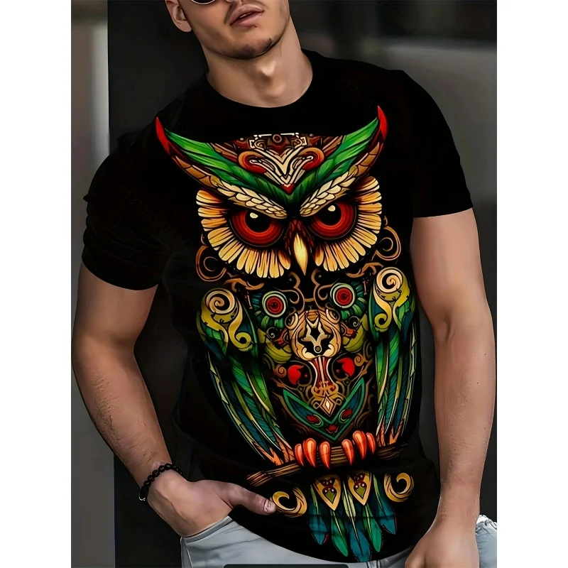 3D Print Colorful Cool Owl T Shirt For Men Fun Animal Pattern Short-Sleeved Tees Harajuku Streetwear Tops O-Neck T-Shirt Clothes