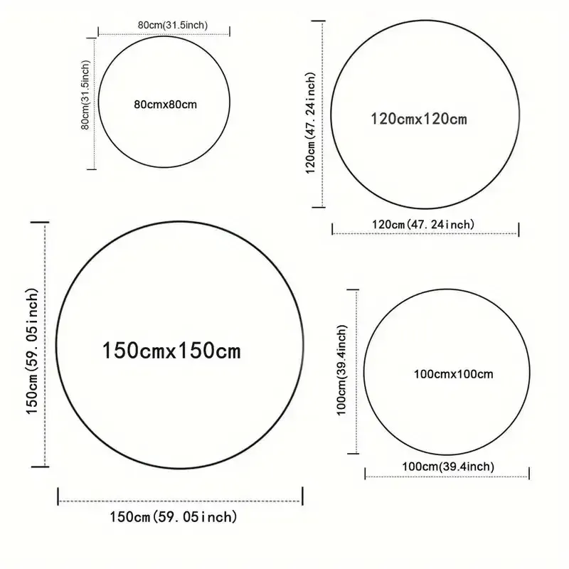 150 × 150CM ≈ 59.1 × 59.1 inches