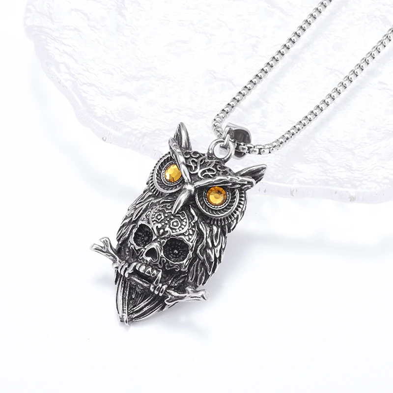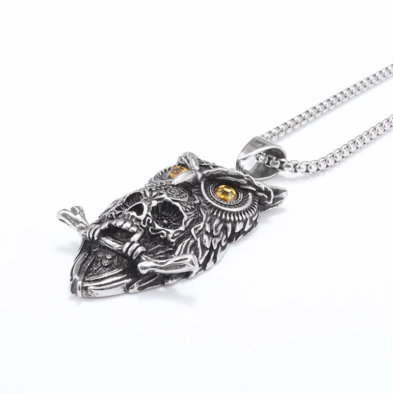 Gothic Style Owl Skull Pendant Necklace for Personalized Men's Retro Motorcycle Rider Party Jewelry Accessories