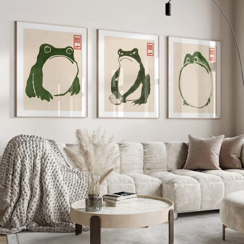 Japanese Matsumoto Hoji Ukiyo-e Frog Canvas Paintings Vintage Frog Poster Wall Art Print Picture for Living Room Home Decor