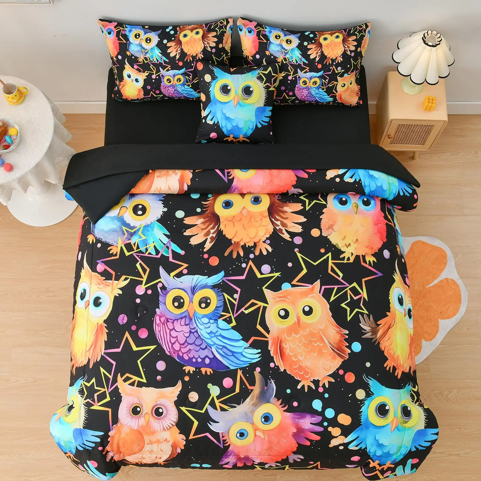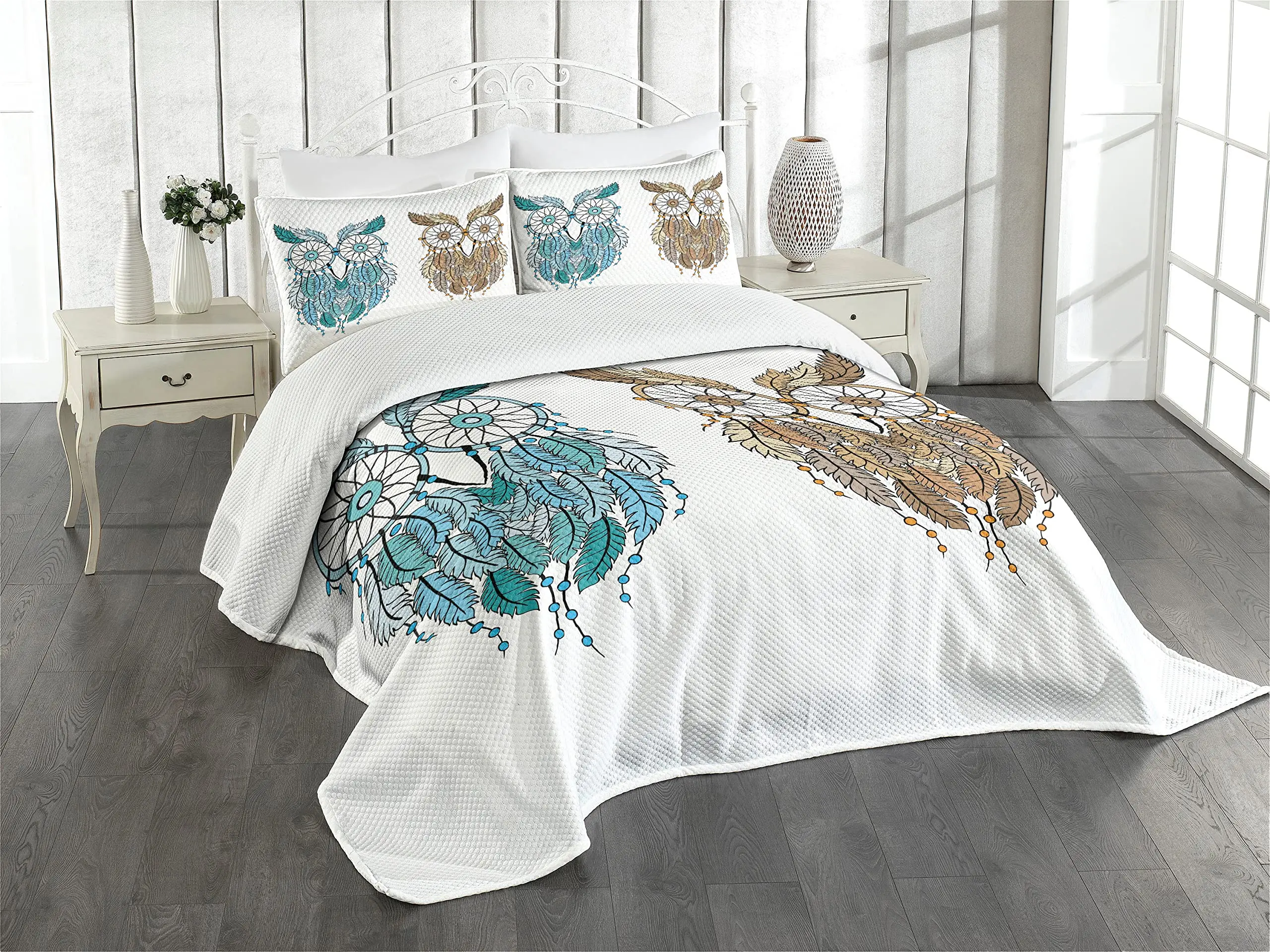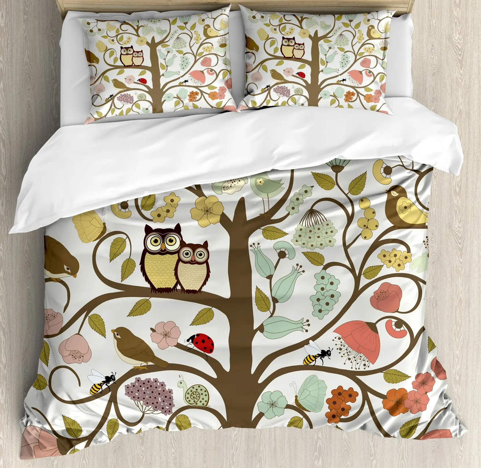 Tribal Duvet Cover Set, Owl Bird Design Decorative 3 Piece Bedding Set with 2 Pillow Shams, King Queen Full Size, for Boys Girls